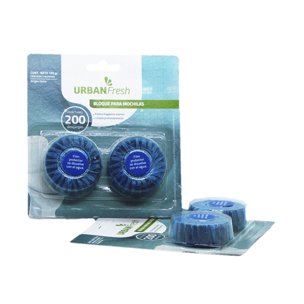 Bloque para mochilas de baño, marca «UrbanFresh». Contiene 2 unidades
